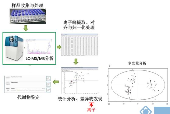 通過液質(zhì)聯(lián)用(LC-MS)方法檢測生物體受擾動或刺激前后大量代謝產(chǎn)物的動態(tài)變化,進而闡明生物體代謝相關(guān)過程的代謝組學(xué)技術(shù)。其研究對象主要是相對分子質(zhì)量1000以下的內(nèi)源性小分子代謝物。