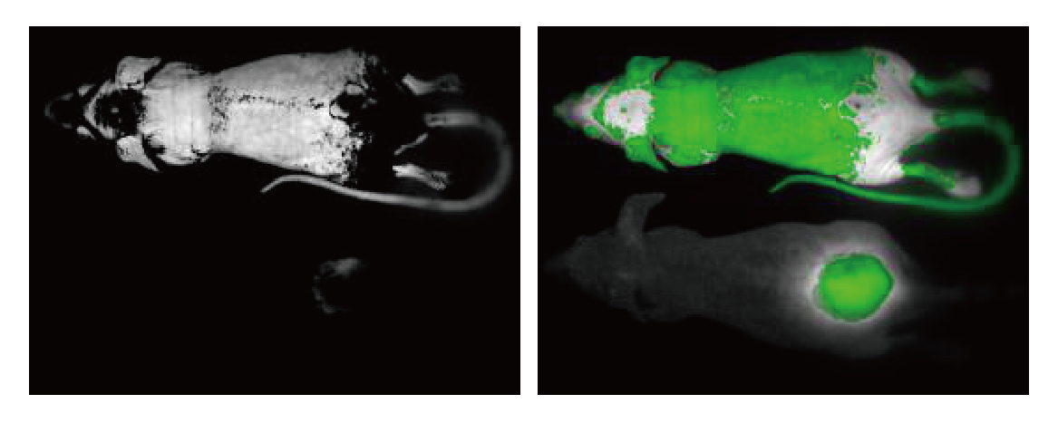 小動物活體成像是在生物體處于正常生理的活體狀態下,利用生物發光(熒光素酶基因(Luciferase)標記細胞或DNA)或熒光標記(綠色熒光蛋白、紅色熒光蛋白等熒光報告基因和FITC、Cy5、Cy7等熒光素及量子點(quantumdot,QD)進行標記)方式,結合高量子效率CCD,對小動物進行成像和分析,觀察被標記動物體內分子、細胞等變化,可真實模擬生理病理狀態下的生物學變化過程。