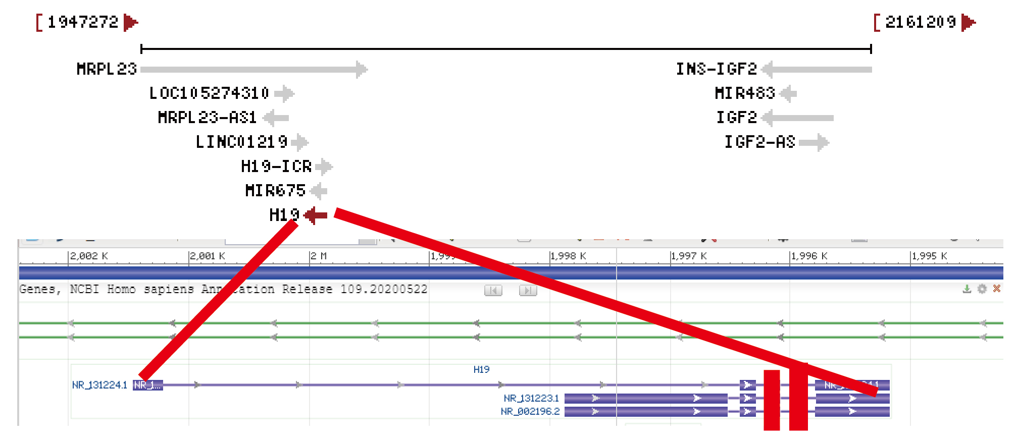 **基因具有3個轉錄本NR_002**.2 、NR_131**.1、NR_131**.1。需要在轉錄本的重疊位置設計靶點,進行敲除,3轉錄本具有多個重復區(qū)域,可以設計出合適靶點。