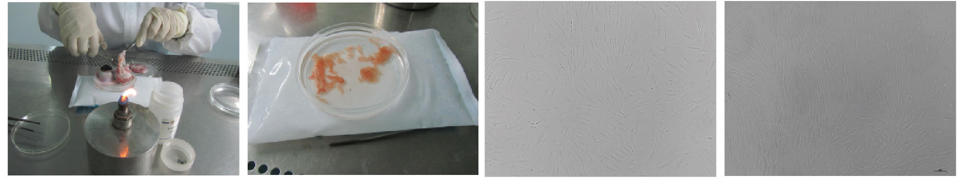 (3)每次消化后取上清液,并加入等量的含10%的DMEM培養基,輕輕混勻,中和胰酶的消化,防止消化過度。用200目細胞過濾篩子過濾含細胞的混合液,最后將過濾后的細胞懸液1000rpm離心5min。離心后收集沉淀,用PBS再次重復離心3次。用細胞培養基將細胞沉淀重懸,接種于細胞培養瓶中培養,并每日觀察細胞的生長,接種后約4d后有少量細胞貼壁。