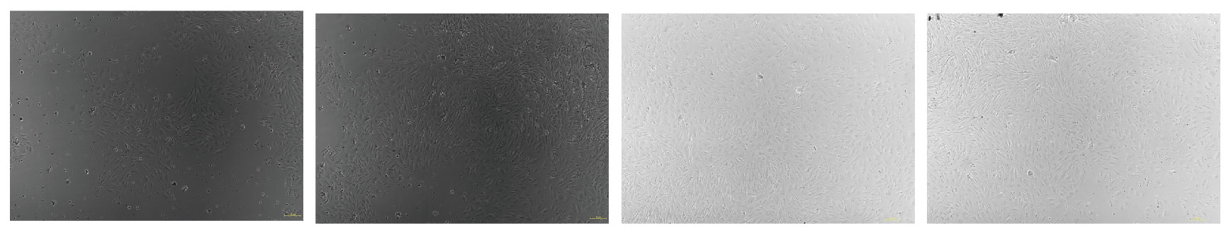 細胞培養一定要保持工作區的無菌清潔,先用紫外燈和臭氧殺菌1h,然后通風30min,操作前需要換細胞間專用拖鞋,雙手帶上一次性橡膠手套并用75%乙醇消毒,穿上實驗服,戴上一次性口罩和帽子,操作時不能大聲說話,整個無菌操作都應該在酒精燈的周圍進行。